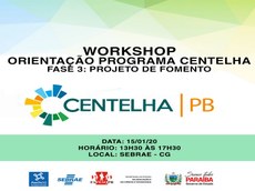 Chegou a vez dos finalistas do Programa Centelha-PB de Campina Grande e região participarem do workshop com orientações para a Fase 3. O evento será realizado pela Fundação de Apoio à Pesquisa da Paraíba (Fapesq) das 13h30 às 17h30, no auditório do Sebrae, em Campina Grande. Os finalistas que estão concorrendo a fase final do Programa vão ter que desenvolver um Projeto de Fomento.