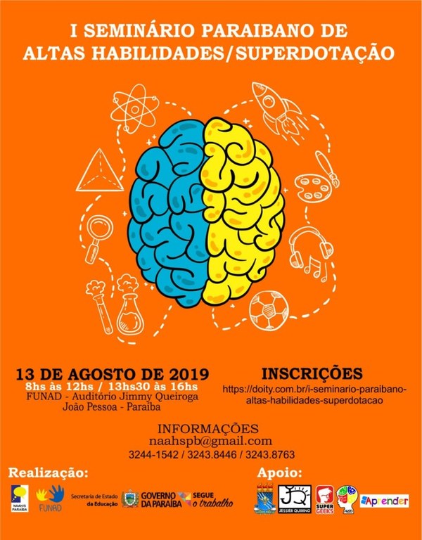 I Seminário Paraibano de Altas Habilidades/Superdotação será realizado no dia 13 de agosto, na FUNAD, em João Pessoa