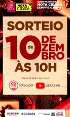 O 12º sorteio do Nota Cidadã, no mês de dezembro, terá 25,178 mil cidadãos paraibanos concorrendo aos 21 prêmios em dinheiro com o número de notas fiscais também recordes de 129,973 mil unidades emitidas com CPF.